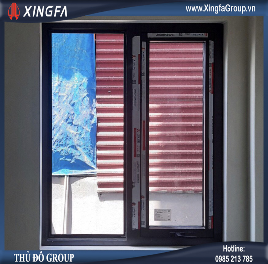 Hình ảnh cửa sổ mở quay 1 cánh và vách kính cố định nhôm Xingfa