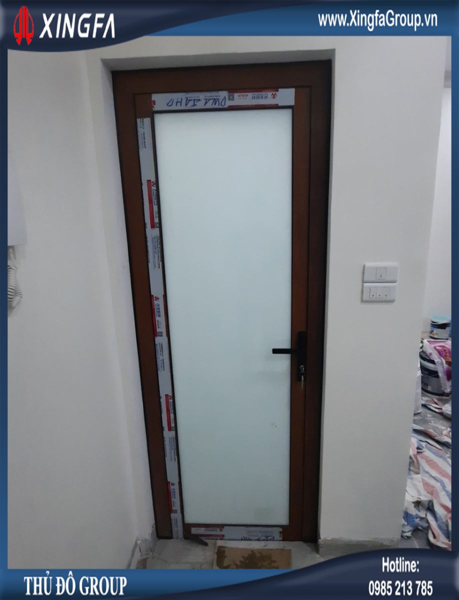 Hình ảnh bộ cửa đi mở quay 1 cánh nhôm Xingfa lắp kính trắng sữa