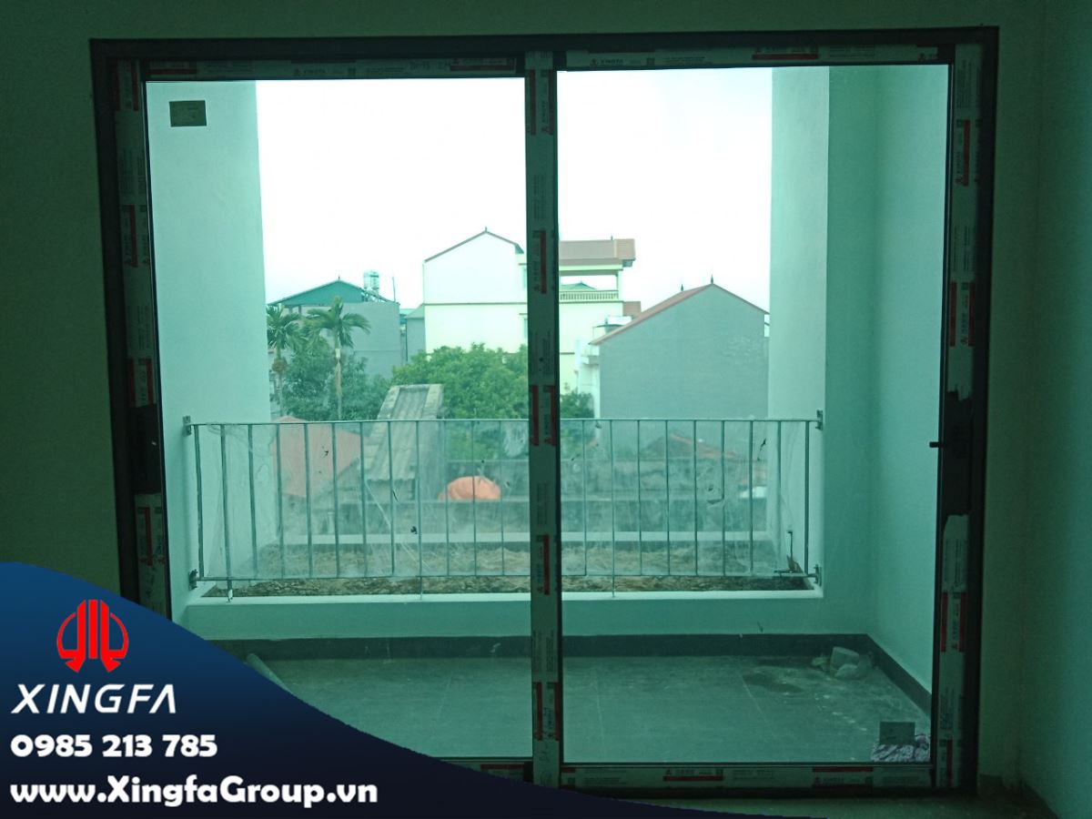 Hình ảnh bộ cửa đi mở trượt 2 cánh nhôm Xingfa tại ban công