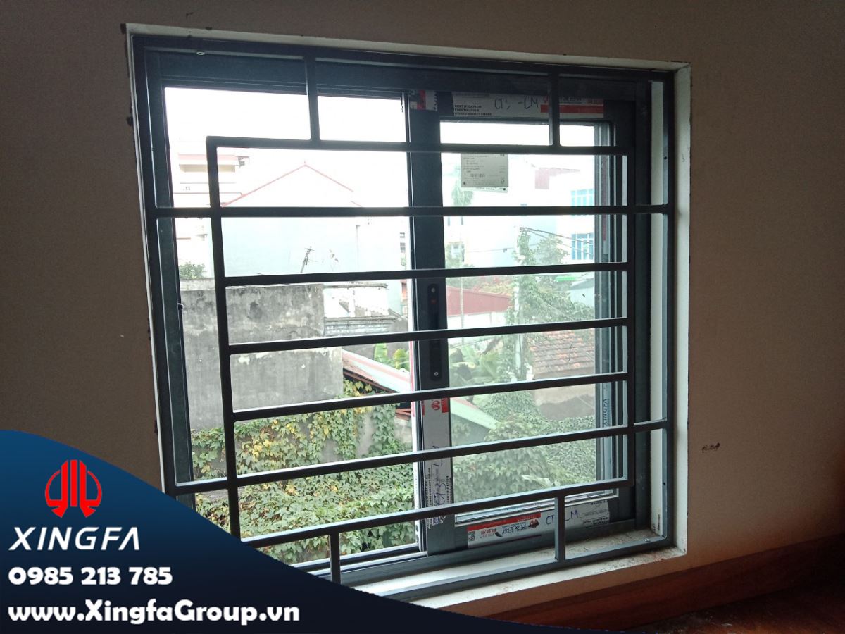 Hình ảnh cửa sổ mở trượt 2 cánh nhôm Xingfa có song sắt bảo vệ