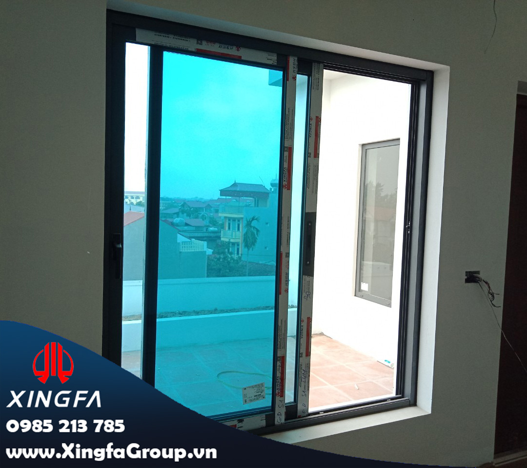 Hình ảnh cửa sổ mở trượt nhôm Xingfa sử dụng kính mầu xanh