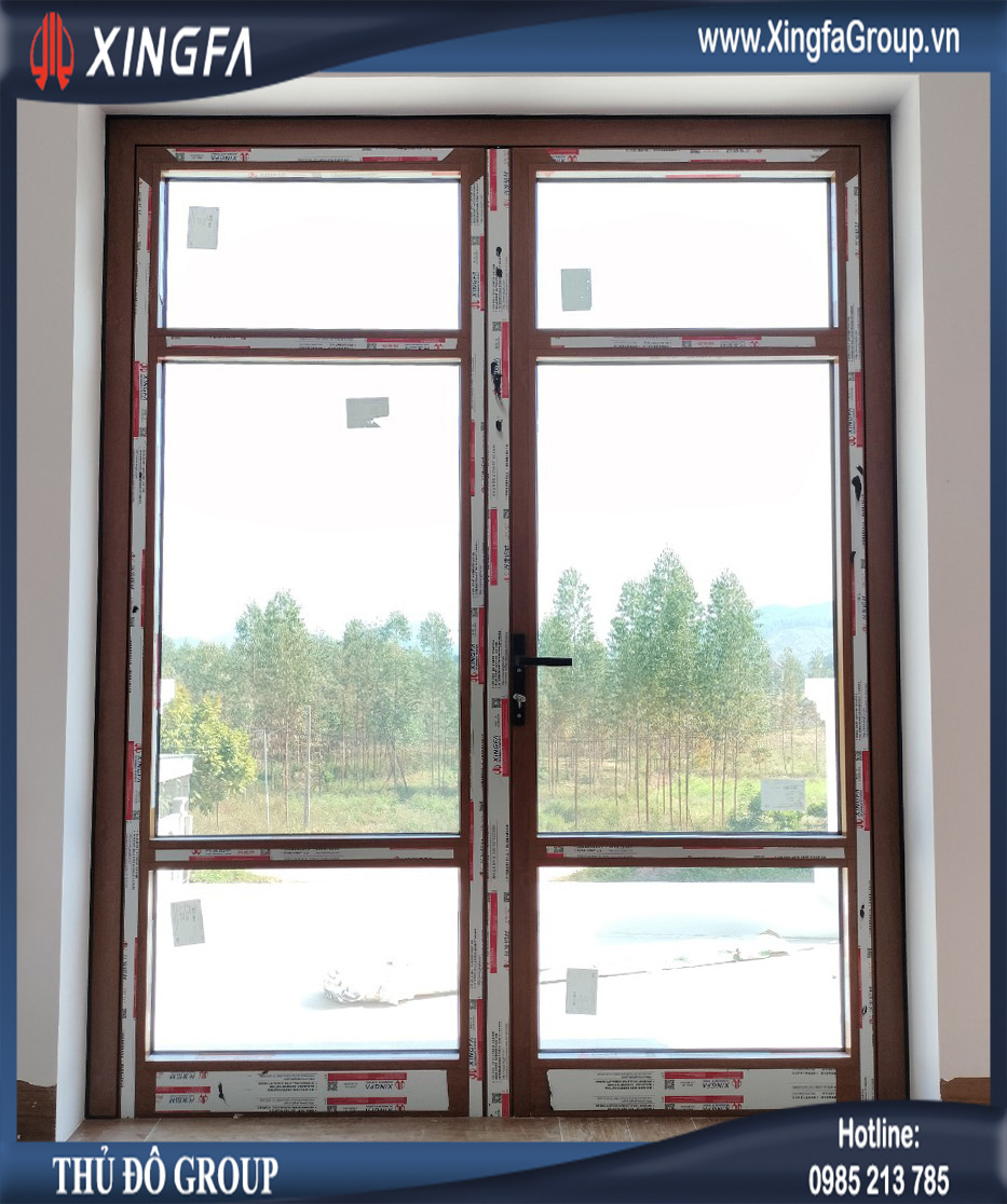 Hình ảnh một bộ cửa nhôm Xingfa mở quay 2 cánh có chia đố cánh