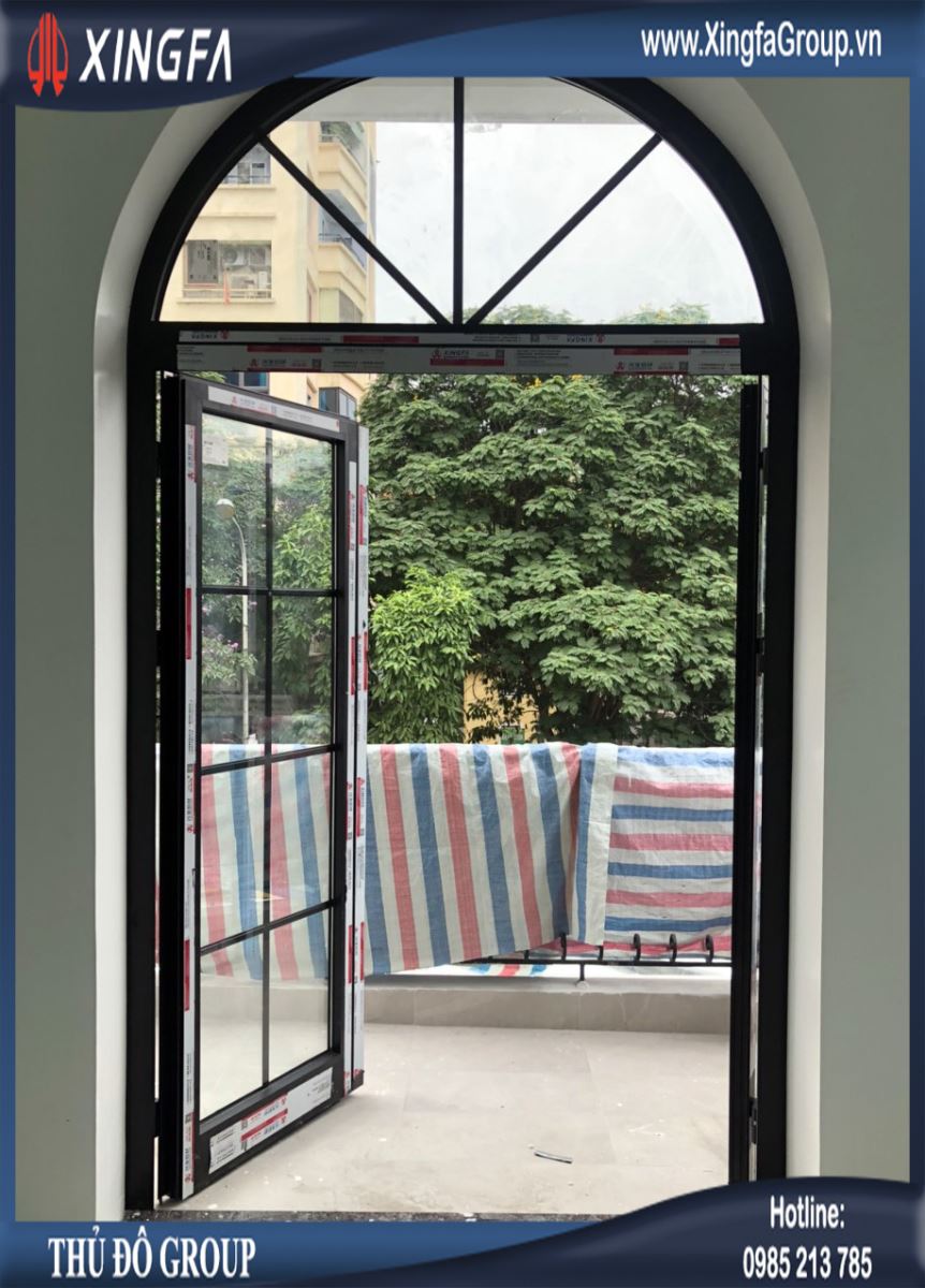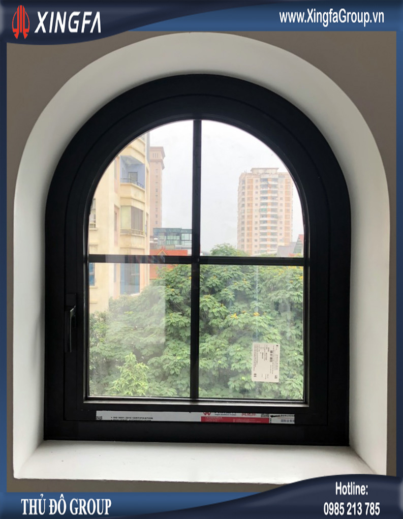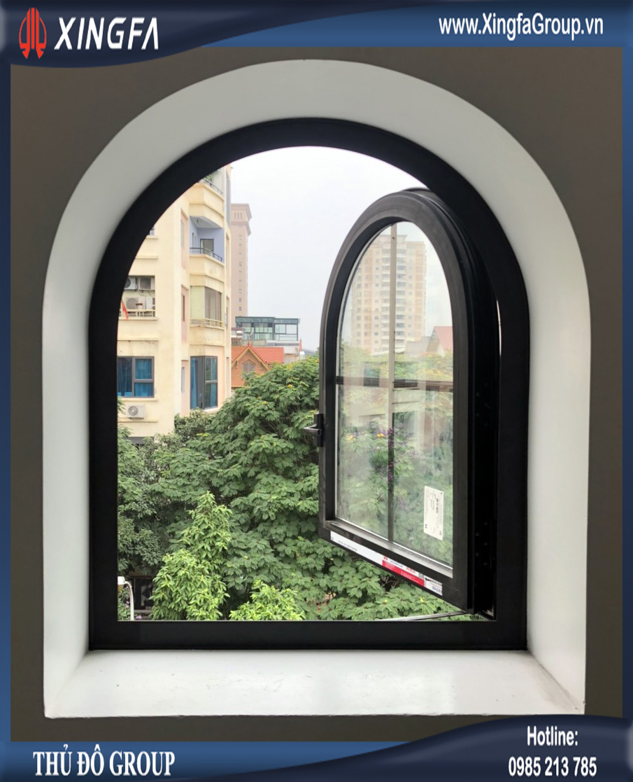 Hình ảnh mẫu cửa sổ mở quay nhôm Xingfa được uốn cong tinh xảo