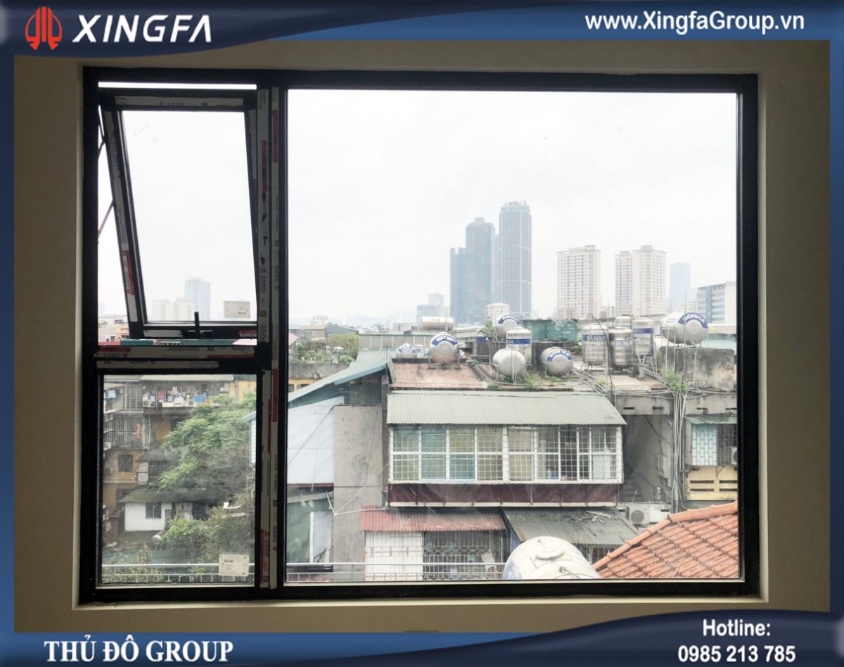 + Cửa sổ mở hất 1 cánh nhôm Xingfa kết hợp với vách kính cố định