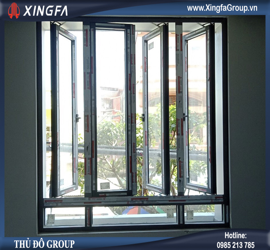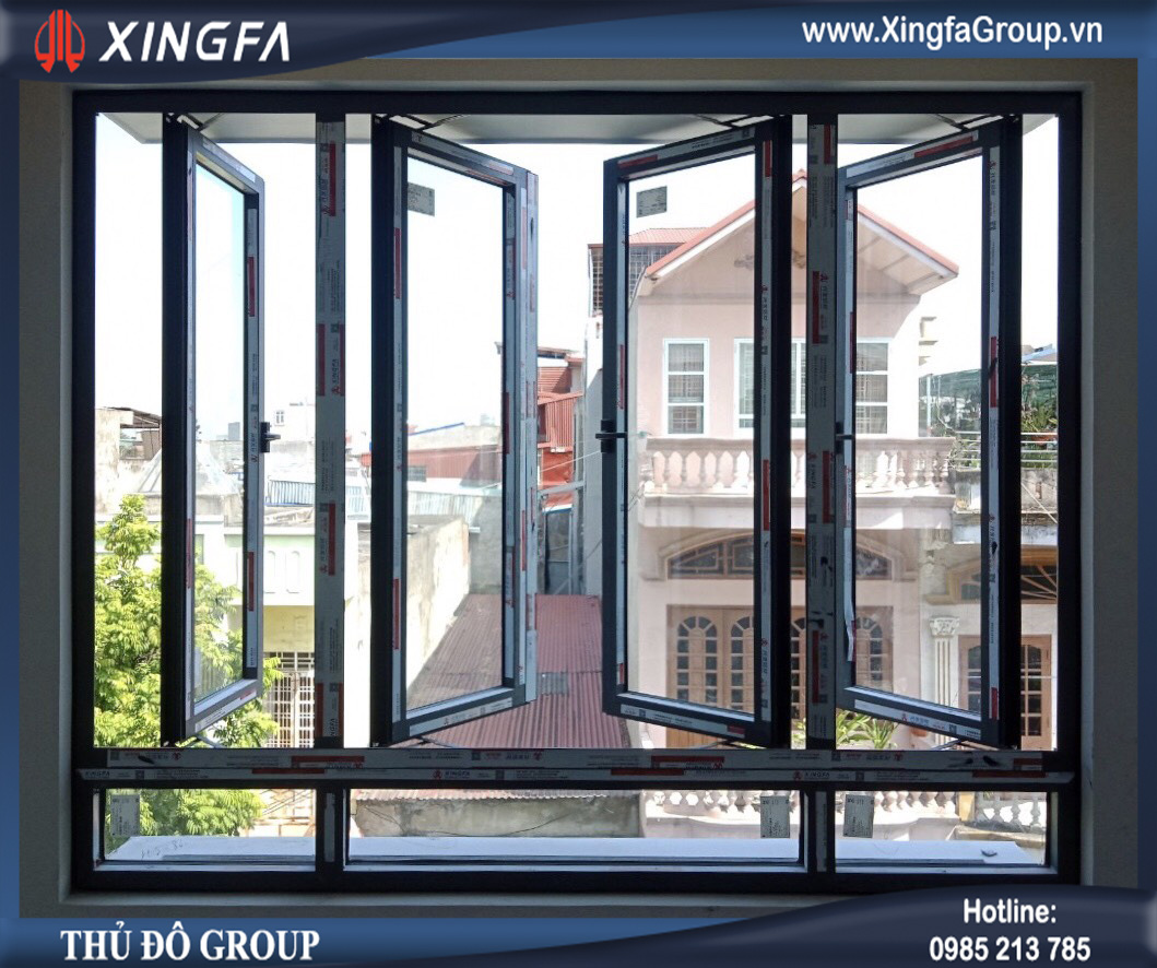 Hình ảnh cửa sổ nhôm Xingfa nhập khẩu mở quay 1 cánh và 2 cánh kết hợp