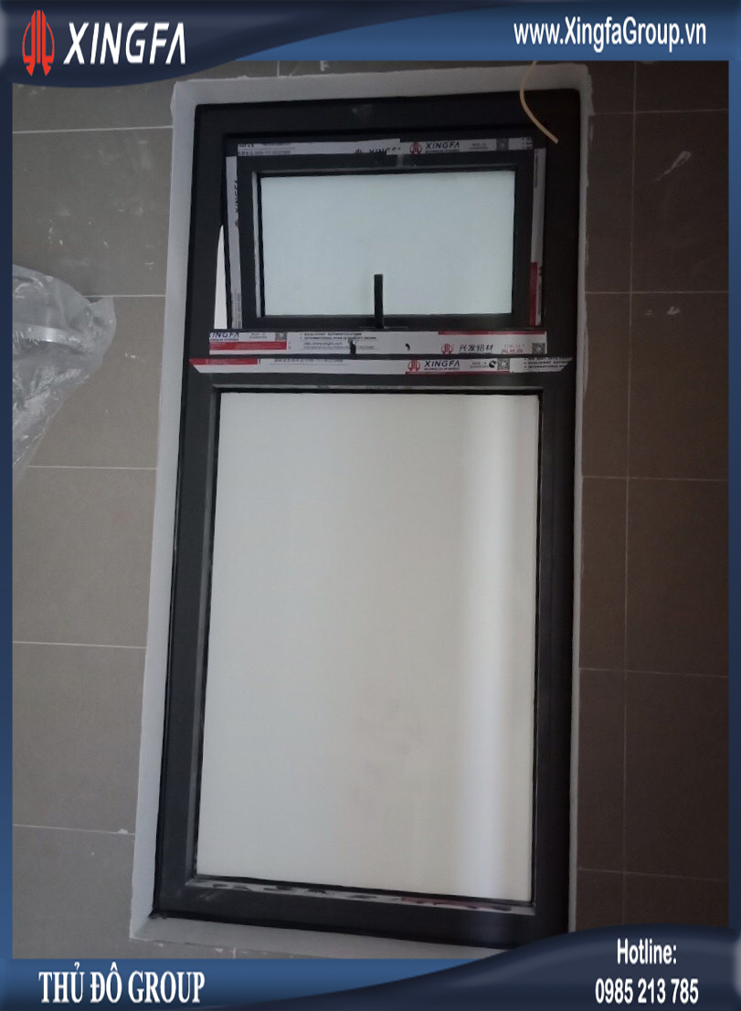 Hình ảnh cửa sổ mở hất nhôm Xingfa kèm vách cố định (kính trắng sữa)