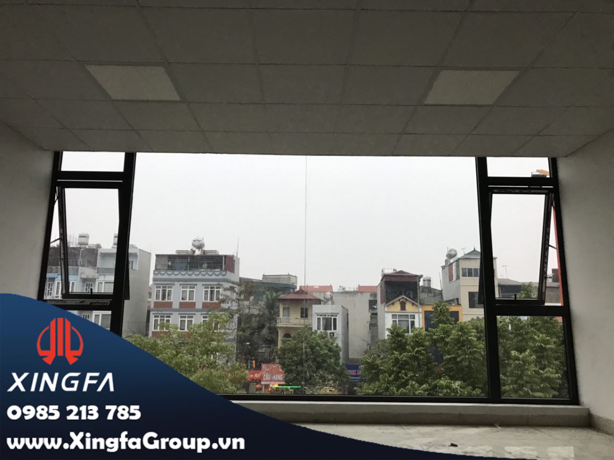 Hình ảnh vách kính cố định cùng cửa sổ mở hất 1 cánh nhôm Xingfa