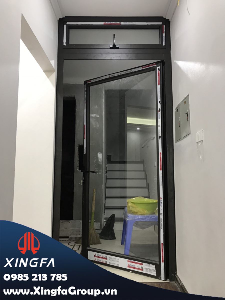 Hình ảnh cửa đi thông phòng nhôm Xingfa mở quay 1 cánh mầu ghi