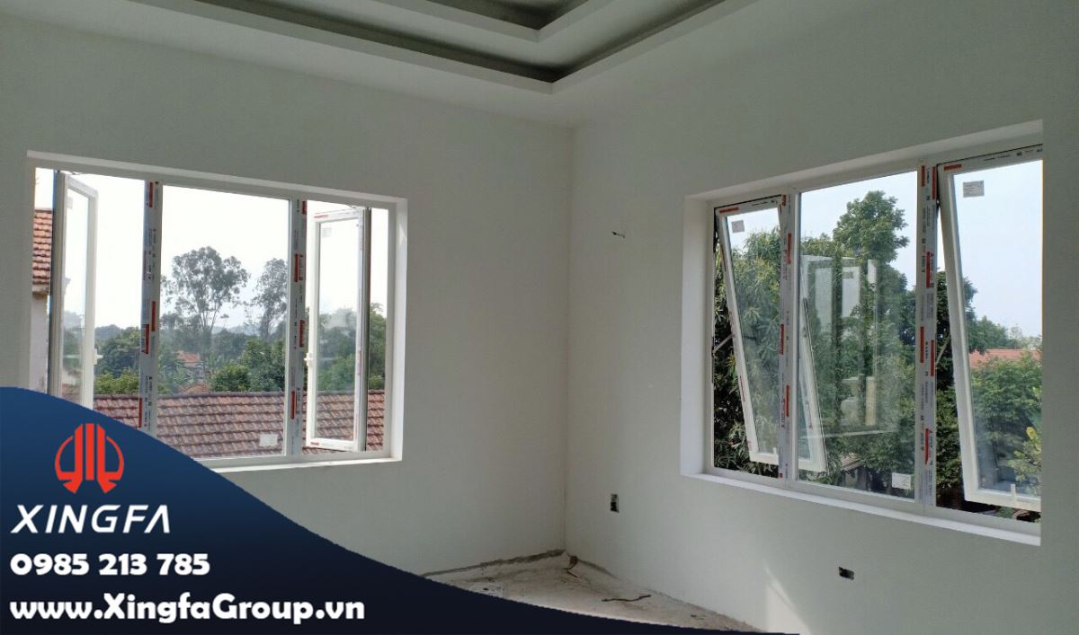 Hình ảnh cửa sổ mở quay nhôm Xingfa tại công trình Phổ Yên, Thái Nguyên