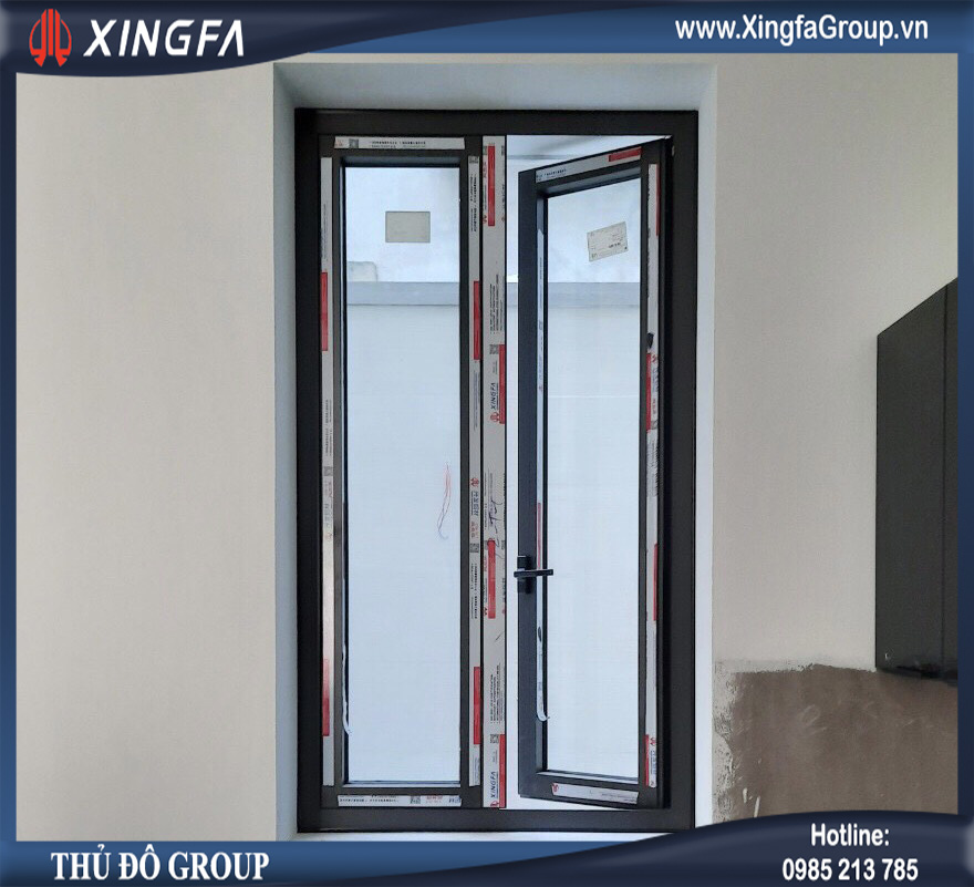 Hình ảnh cửa sổ mở quay 2 cánh nhôm Xingfa hệ 55 có độ dầy 1.4mm