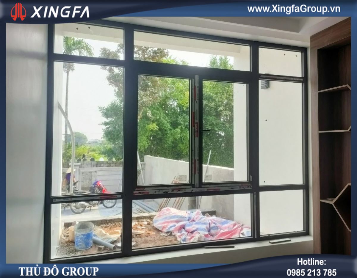 Hình ảnh bộ cửa sổ mở quay + vách kính nhôm Xingfa rất đẹp mắt
