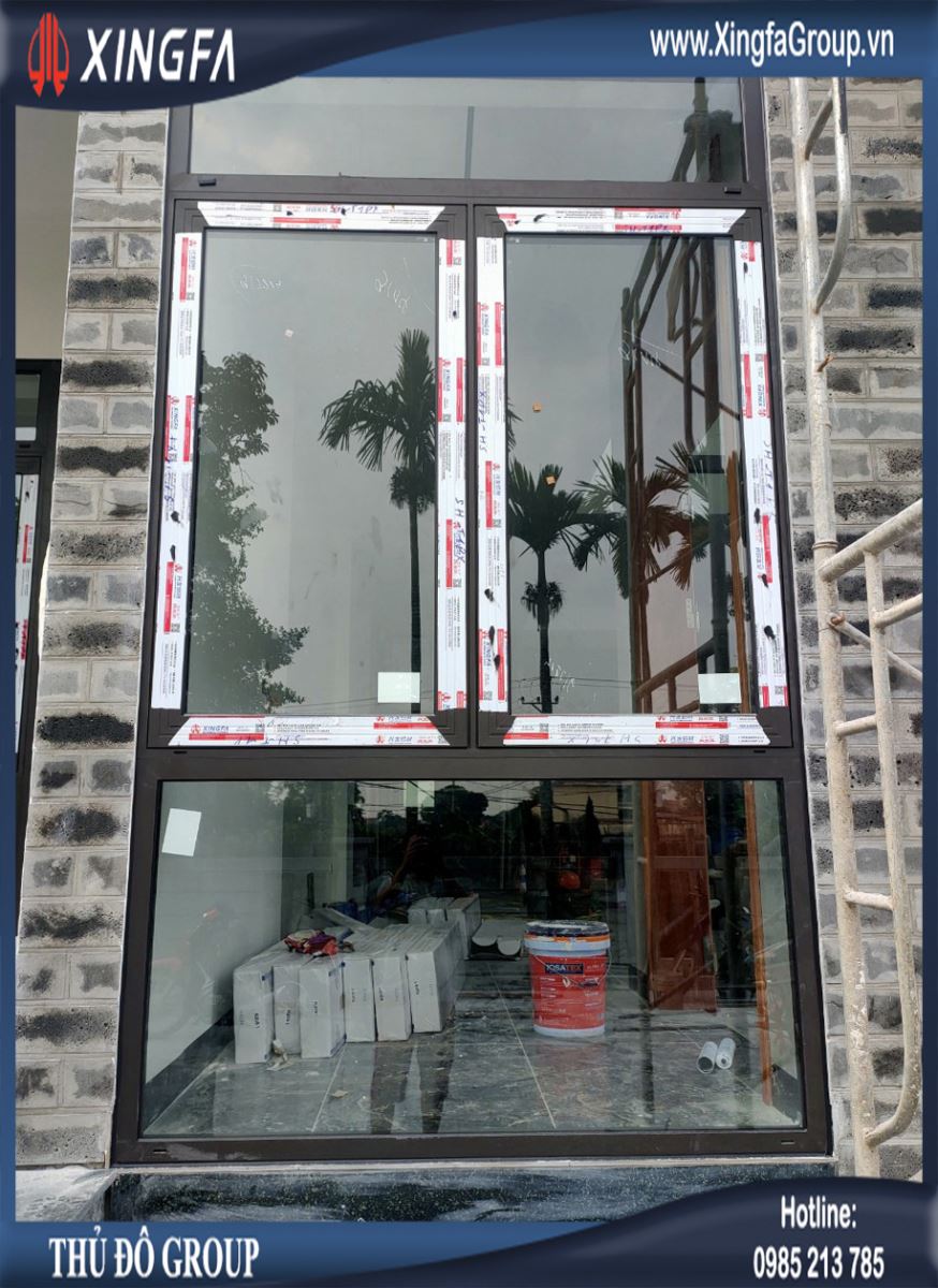 Hình ảnh bộ cửa sổ 2 cánh + vách kính nhôm Xingfa xung quanh