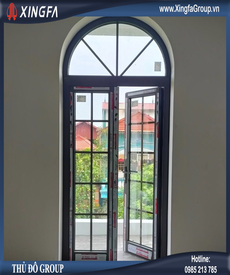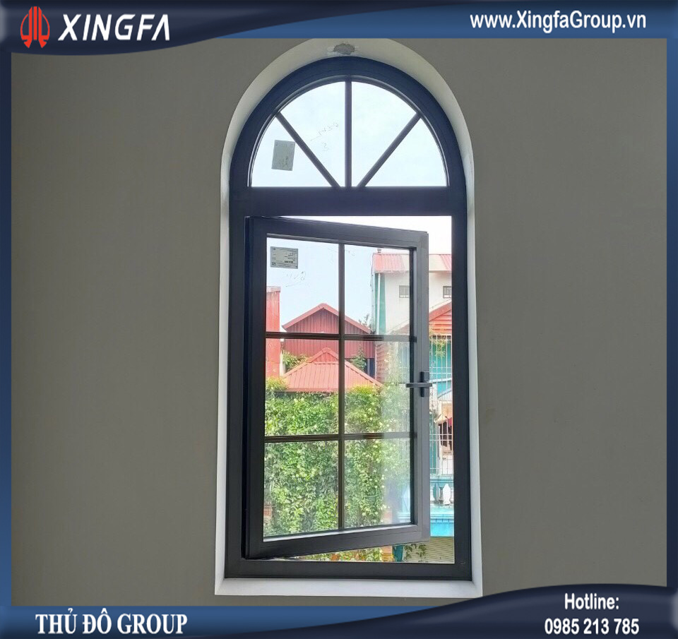 Hình ảnh cửa sổ mở quay 1 cánh nhôm Xingfa có vách kính mái vòm