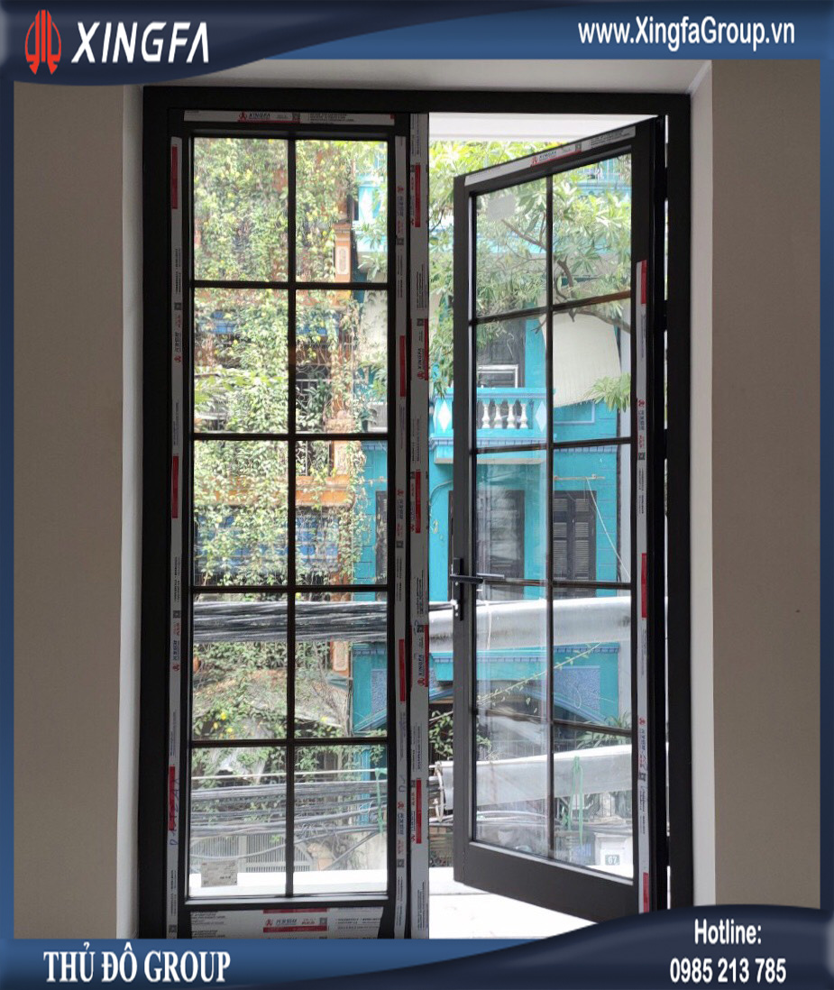 Hình ảnh bộ cửa đi mở quay 2 cánh nhôm Xingfa tem đỏ Quảng Đông