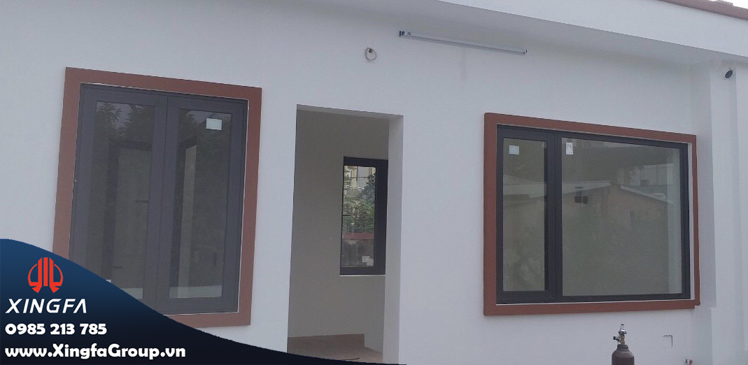 Hình ảnh cửa nhôm Xingfa mở quay và vách kính cố định nhôm Xingfa