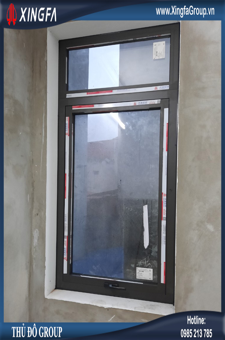 Hình ảnh cửa sổ mở hất 1 cánh nhôm Xingfa + vách kính fix nhôm Xingfa