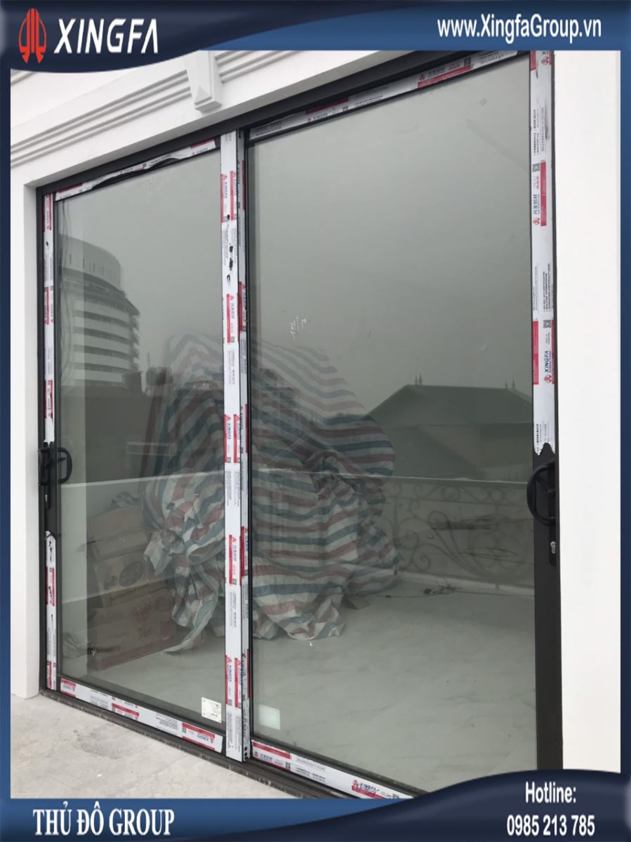 Hình ảnh bộ cửa đi mở trượt 2 cánh nhôm Xingfa chính hãng 100%