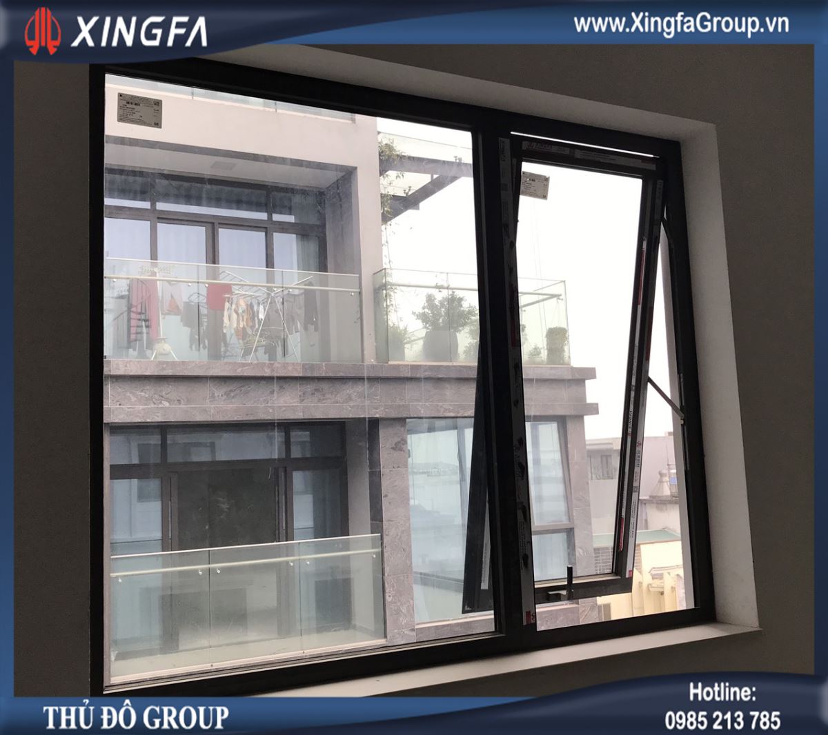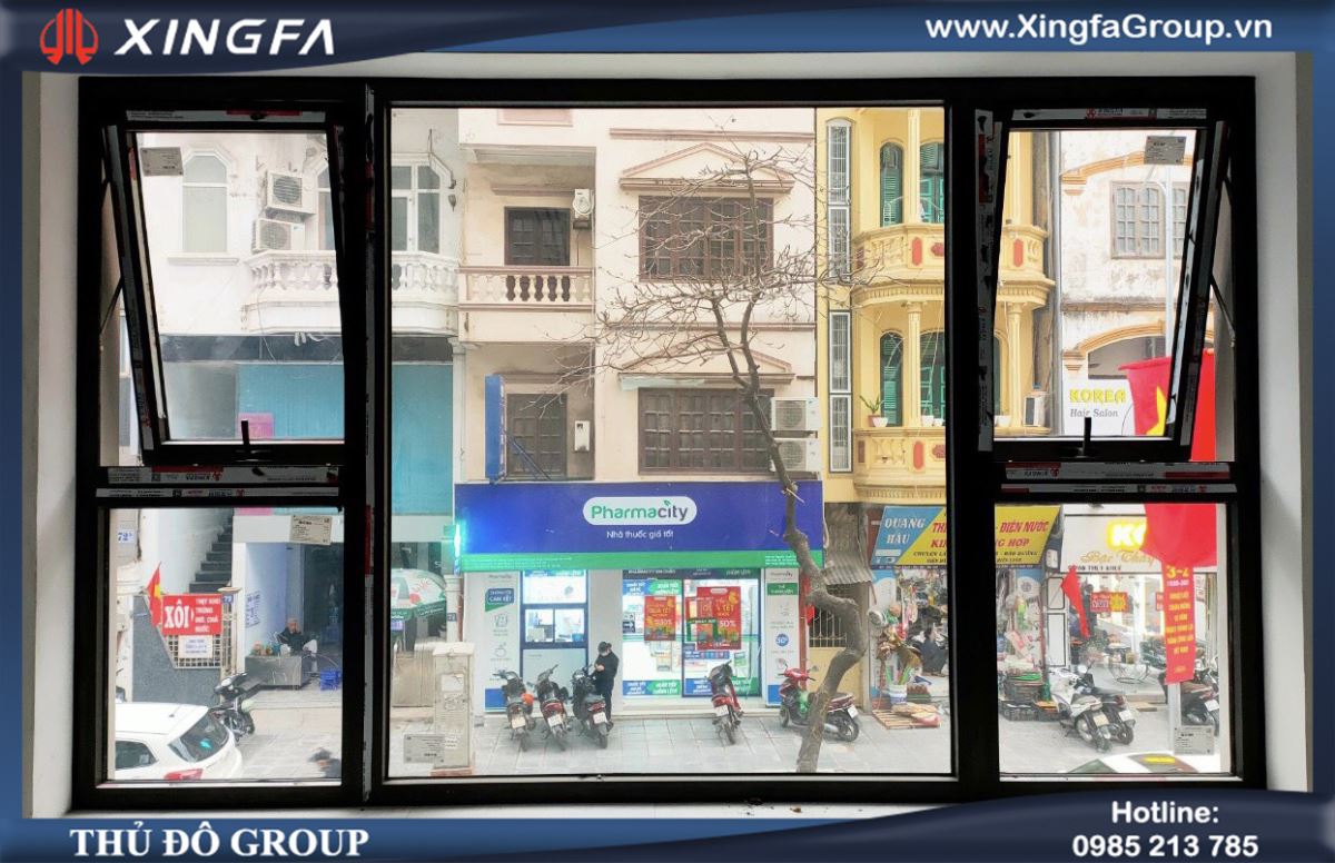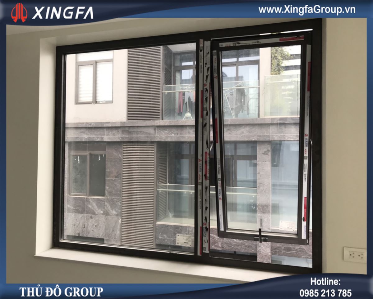 Hình ảnh một bộ cửa sổ mở hất 1 cánh nhôm Xingfa chính hãng