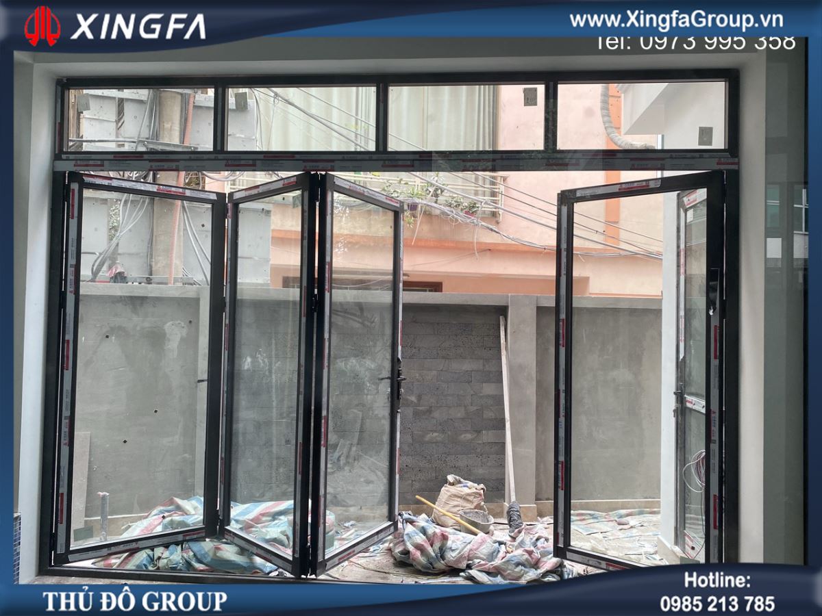 Hình ảnh một bộ cửa đi mở xếp gấp 4 cánh nhôm Xingfa (chia cánh 3-1)