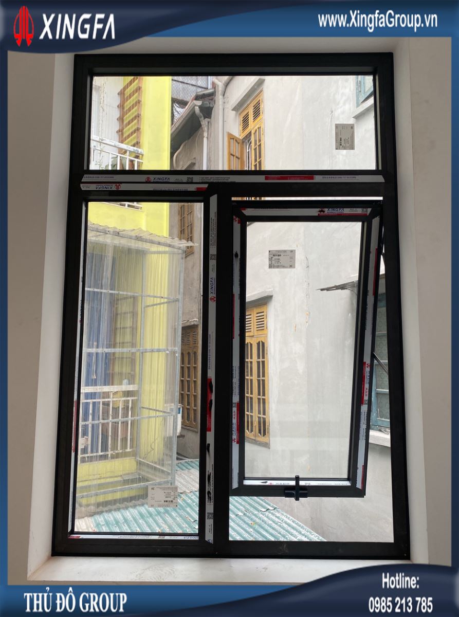 Hình ảnh bộ cửa sổ mở hất 1 cánh nhôm Xingfa hệ 55 độ dầy 1.4mm