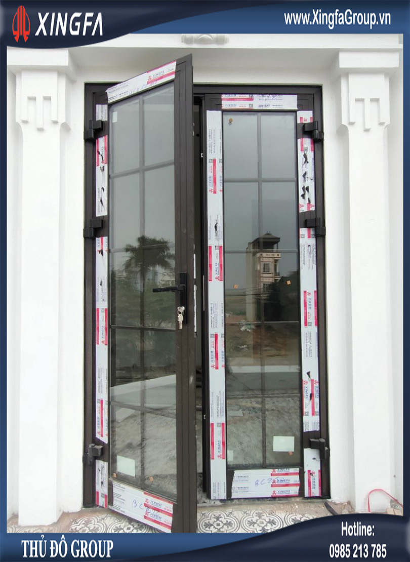 Hình ảnh cửa đi mở quay 2 cánh nhôm Xingfa hệ 55 độ dày 2.0mm