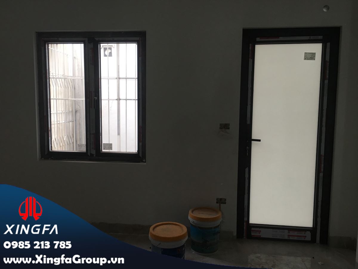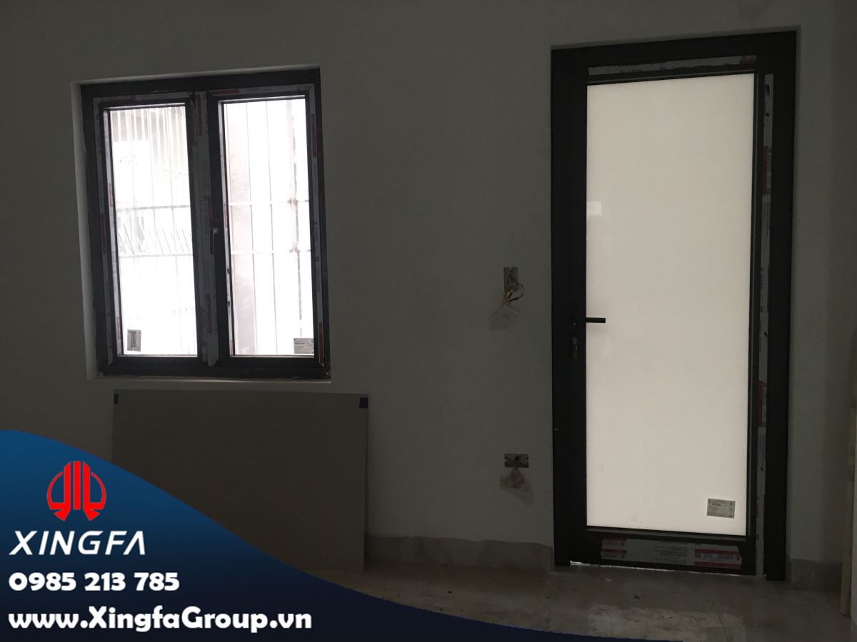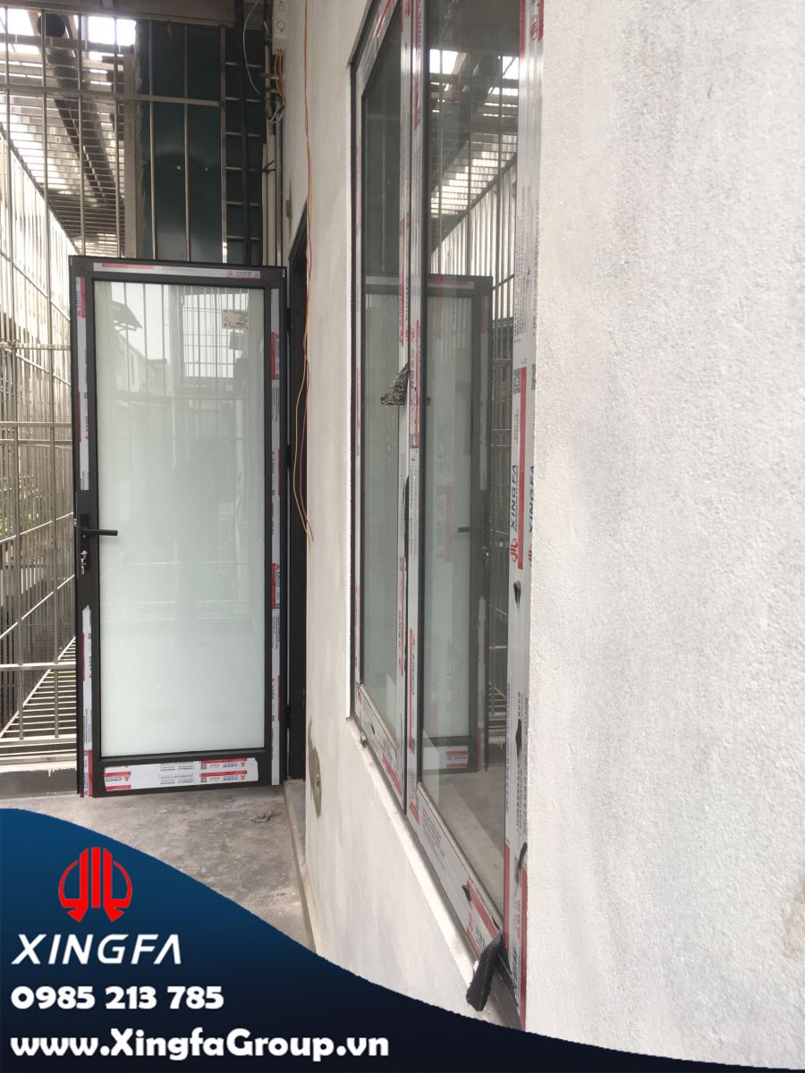 Hình ảnh cửa đi mở quay 1 cánh và cửa sổ mở quay 2 cánh nhôm Xingfa