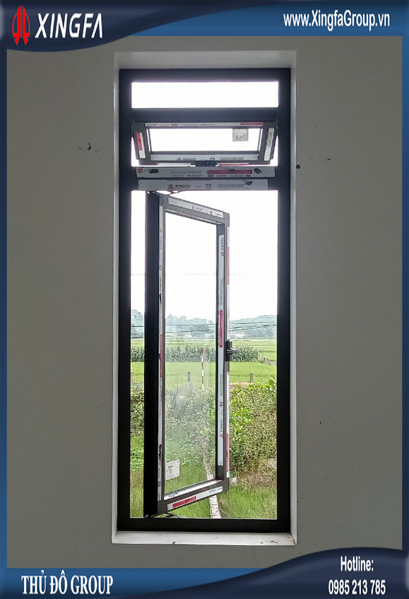 Hình ảnh cửa sổ mở quay 1 cánh nhôm Xingfa có tem đỏ chính hãng