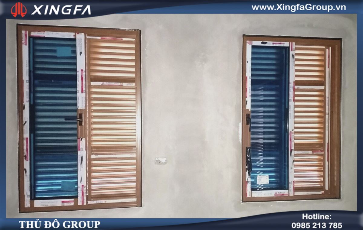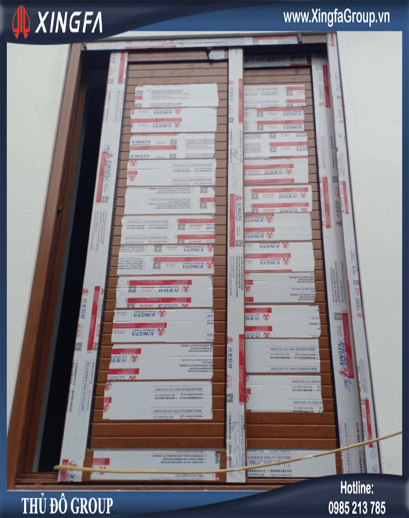 Cửa nhôm Xingfa vân gỗ do Thủ Đô Group lắp đặt