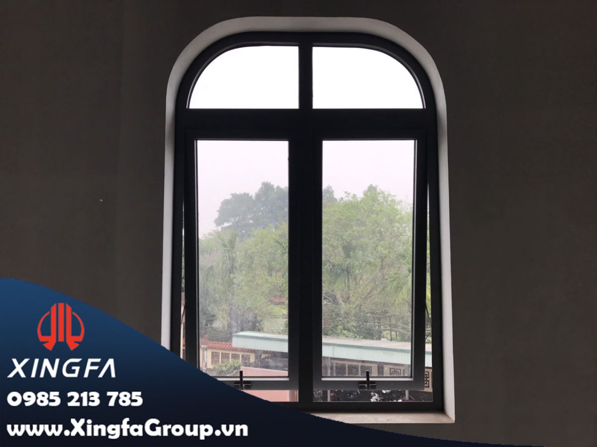 Hình ảnh cửa sổ mở hất nhôm Xingfa + vách kính mái vòm nhôm Xingfa
