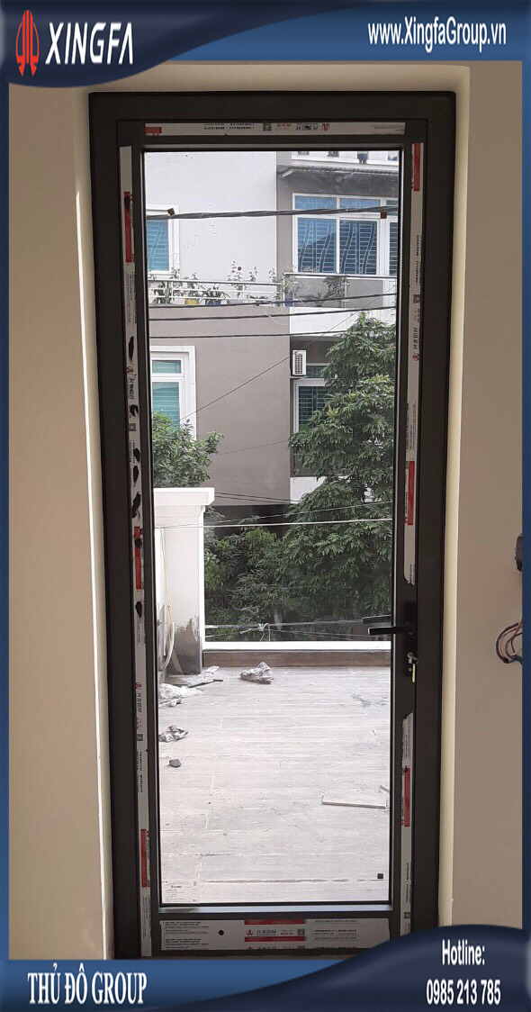 Ngoài 2 mẫu cửa sổ này, Thủ Đô Group cũng lắp đặt cửa đi mở quay 1 cánh làm cửa ra vào ở khu vực ban công. Cửa đi mở quay 1 cánh nhỏ gọn nên rất thường được dùng làm cửa thông phòng, cửa phụ, cửa ra ban công, đặc biệt là cửa nhà tắm, nhà vệ sinh… Xét về khả năng cách âm cách nhiệt, đây cũng là mẫu cửa nhôm Xingfa được đánh giá cao nhất nên càng làm tăng sự phổ biến của sản phẩm này.