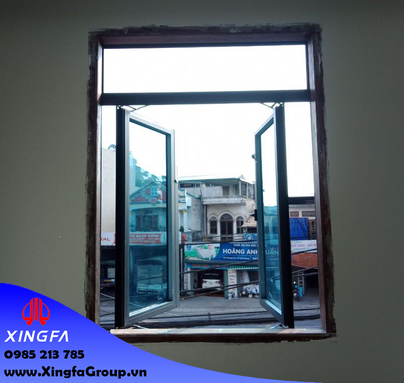 Hình ảnh cửa sổ mở quay 2 cánh nhôm Xingfa tem đỏ Quảng Đông