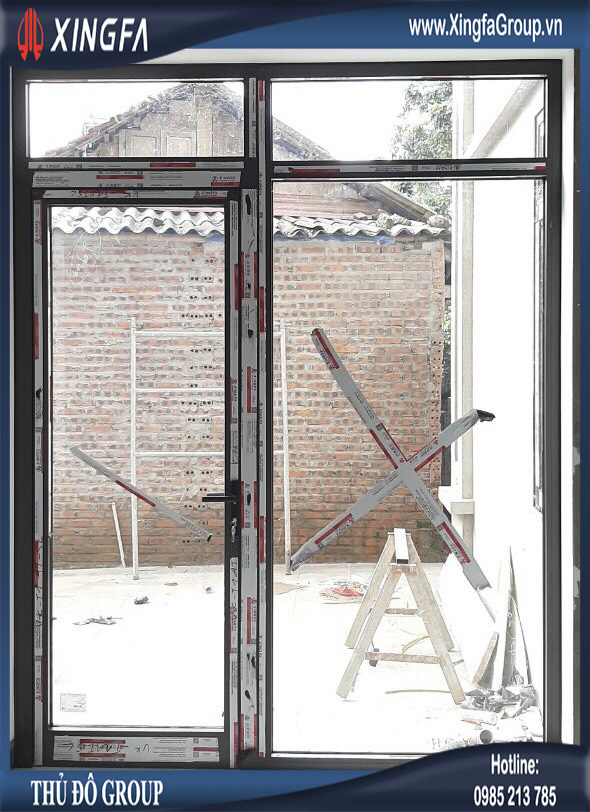 Hình ảnh cửa nhôm Xingfa mở quay 1 cánh kết hợp vách kính cố định