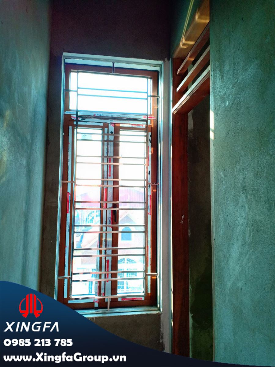 Hình ảnh cửa sổ mở quay 1 cánh nhôm Xingfa có chấn song bảo vệ
