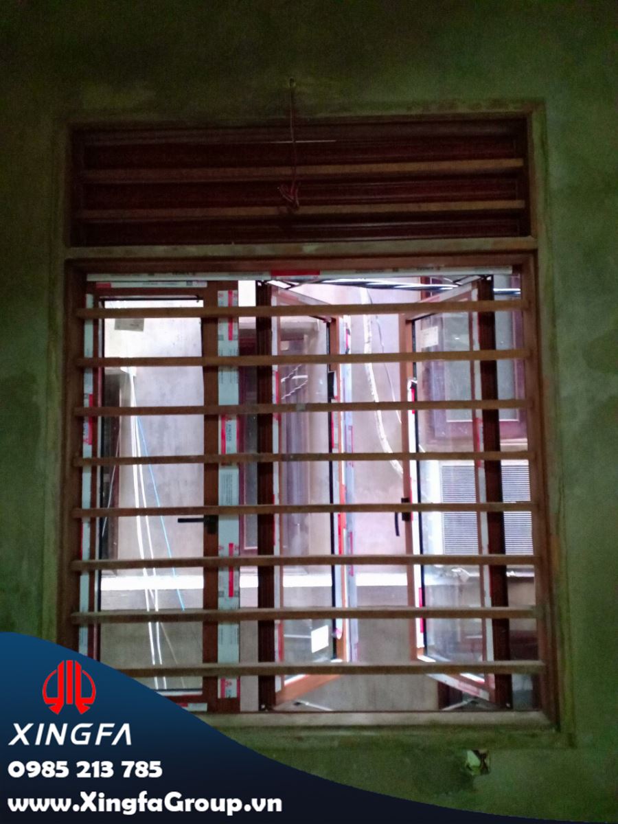Các sản phẩm cửa nhôm Xingfa mầu vân gỗ tại công trình này như sau:
