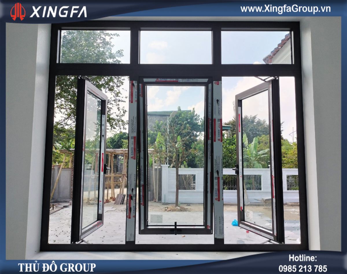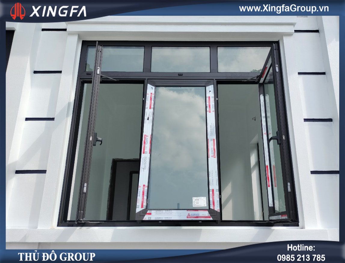Hình ảnh trạng thái mở của bộ cửa sổ 3 cánh nhôm Xingfa chính hãng