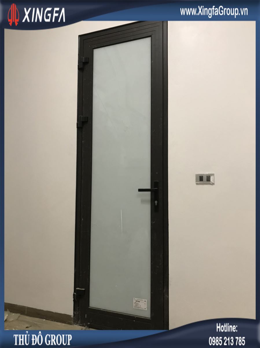 Hình ảnh cửa đi mở quay 1 cánh nhôm Xingfa với kính màu trắng sữa