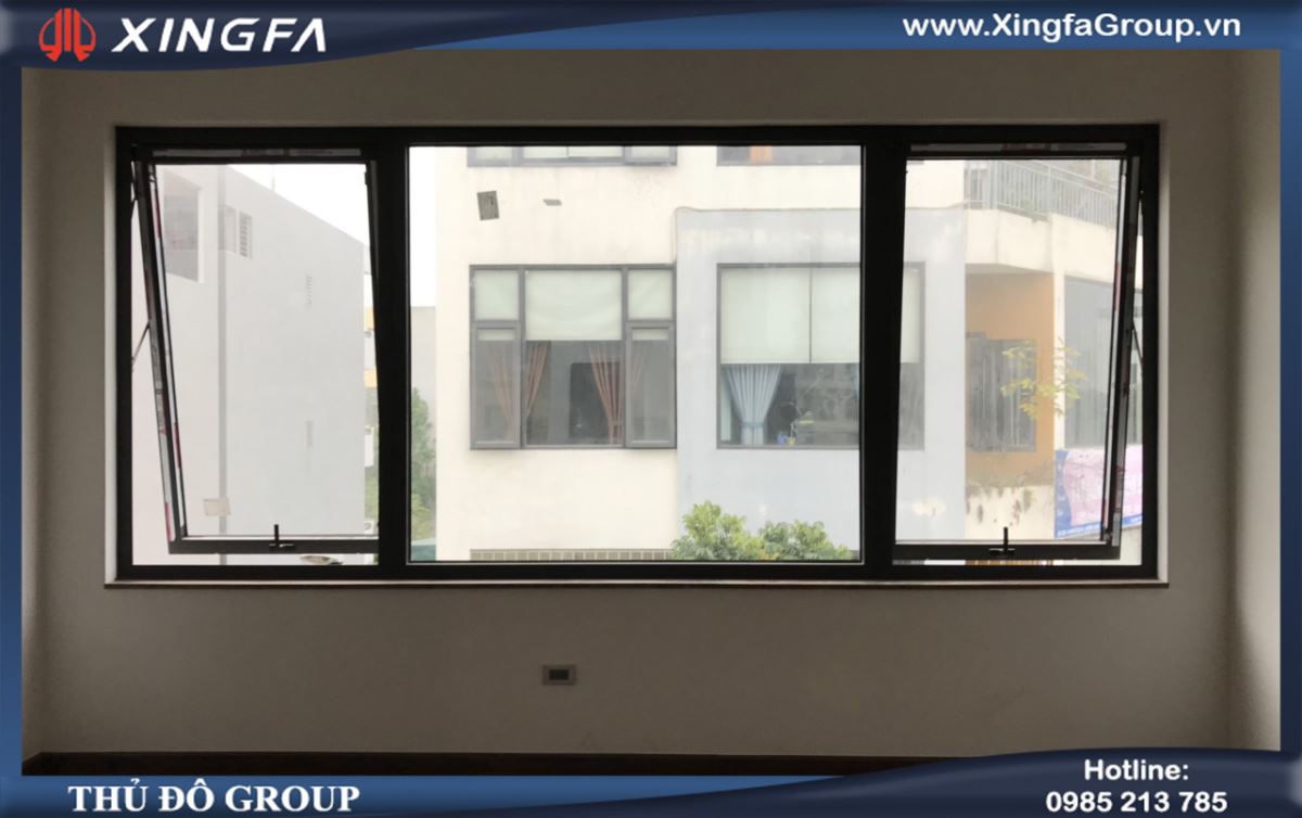 Hình ảnh cửa sổ mở hất 1 cánh lắp cùng với vách cố định nhôm Xingfa