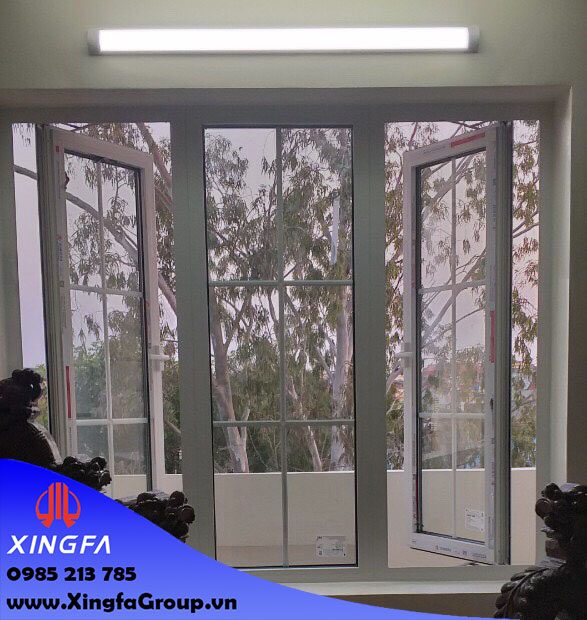 Cửa sổ nhôm Xingfa mở quay 2 cánh kết hợp vách kính cố định
