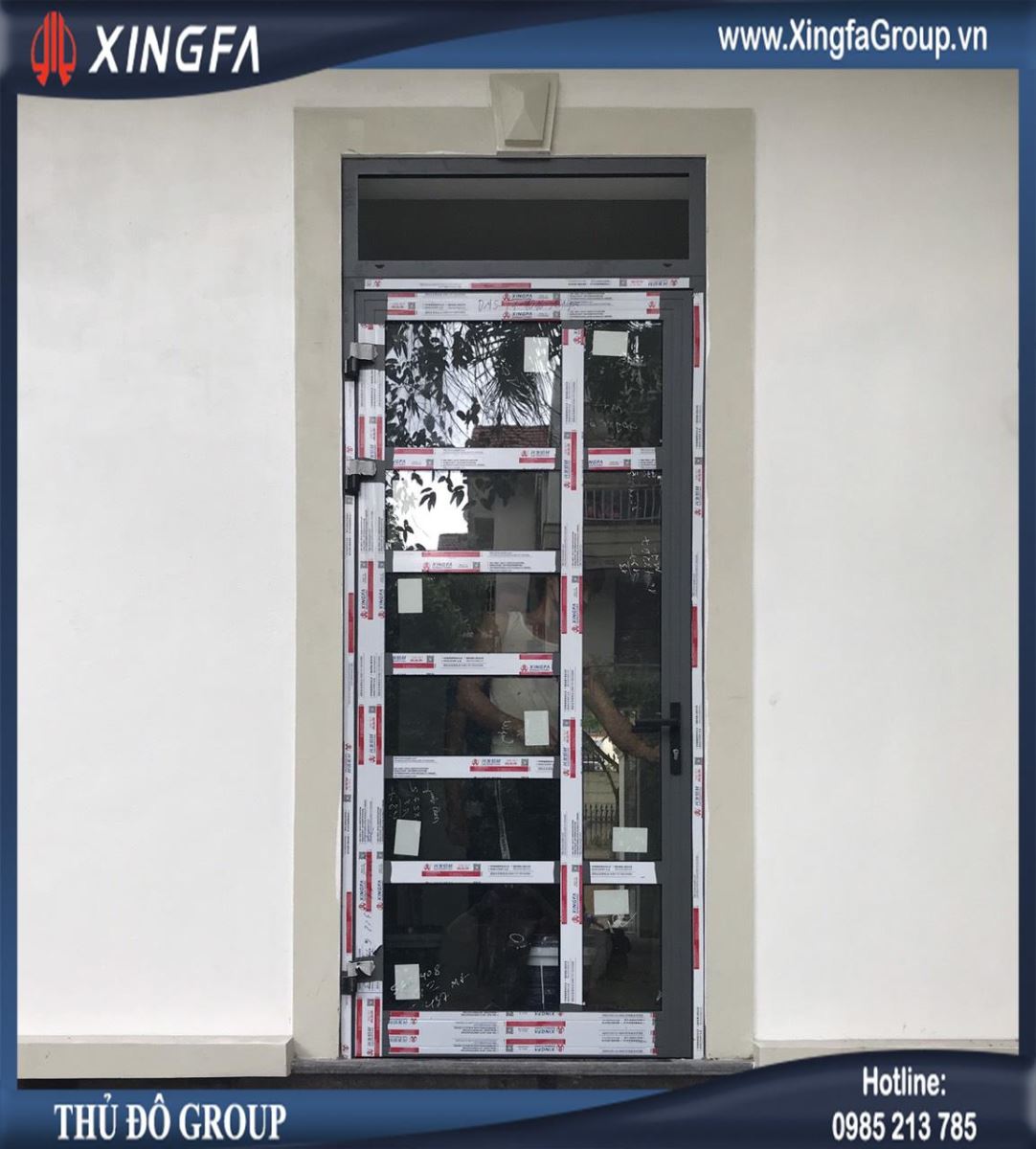 Hình ảnh cửa đi mở quay 1 cánh nhôm Xingfa nhập khẩu lắp đặt tại vị trí thông phòng