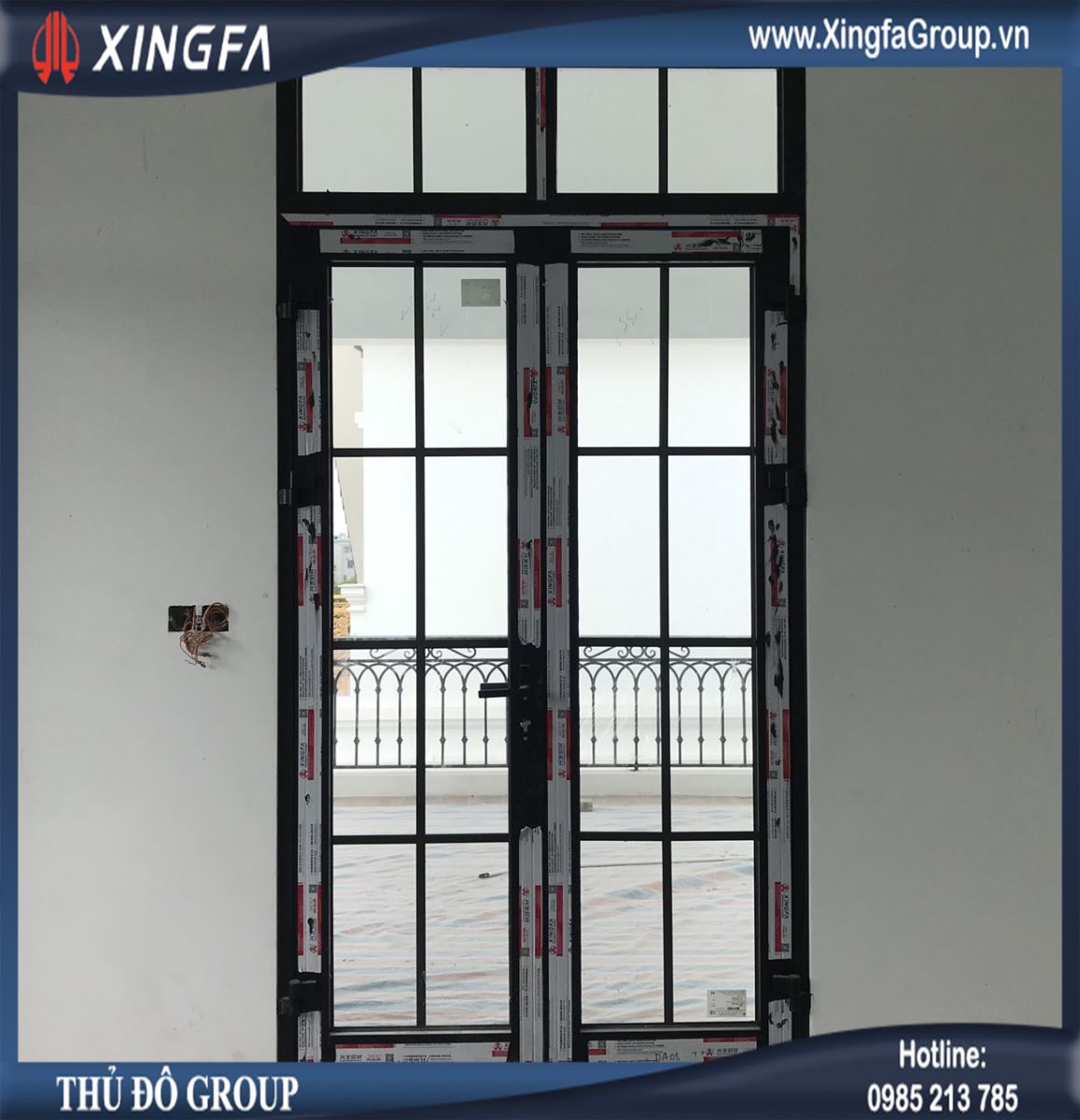Hình ảnh cửa đi mở quay 2 cánh nhôm Xingfa tem đỏ Quảng Đông
