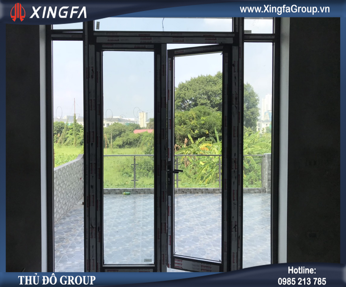 Hình ảnh cửa đi mở quay 2 cánh nhôm Xingfa chính hãng 100%