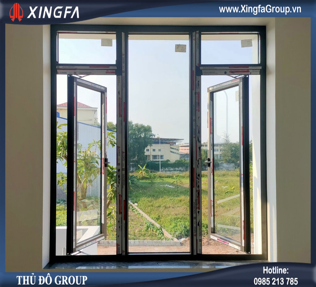 + Vách kính cố định nhôm Xingfa được lắp đặt cùng bộ cửa sổ mở quay 2 cánh