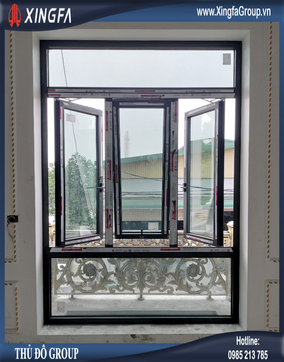 Hình ảnh cửa sổ 3 cánh nhôm Xingfa (mở quay kết hợp mở hất)
