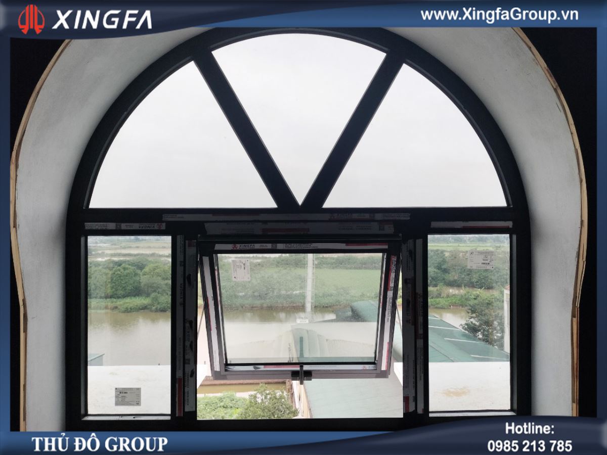 Hình ảnh cửa sổ mở hất nhôm Xingfa + vách kính uốn mái vòm