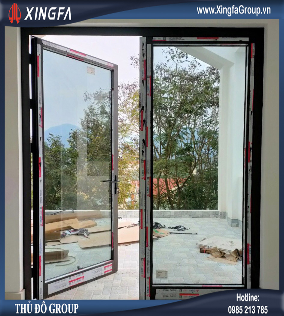 Hình ảnh cửa đi mở quay 2 cánh nhôm Xingfa chính hãng Quảng Đông