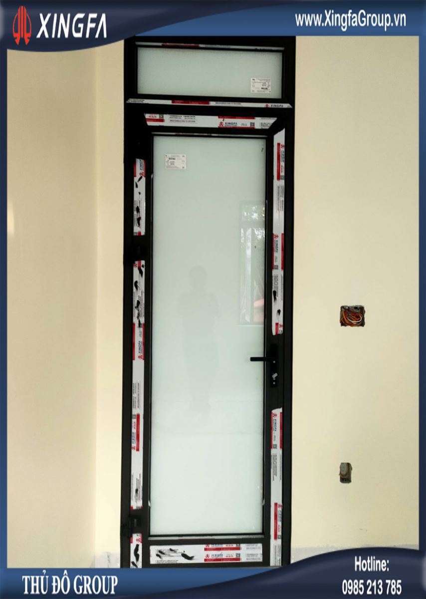 Hình ảnh cửa đi mở quay 1 cánh nhôm Xingfa nhập khẩu kính màu trắng sữa