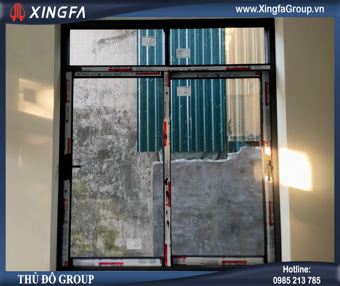 Hình ảnh một bộ cửa sổ mở trượt 2 cánh nhôm Xingfa tem đỏ Quảng Đông