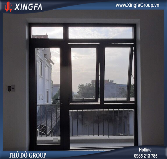 Hình ảnh cửa sổ mở hất 1 cánh nhôm Xingfa kèm vách cố định Xingfa