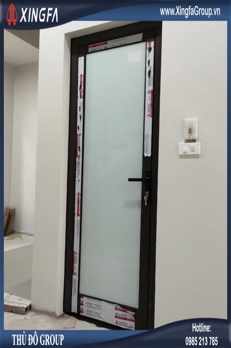 Hình ảnh cửa đi mở quay 1 cánh Xingfa kính trắng sữa tại nhà vệ sinh