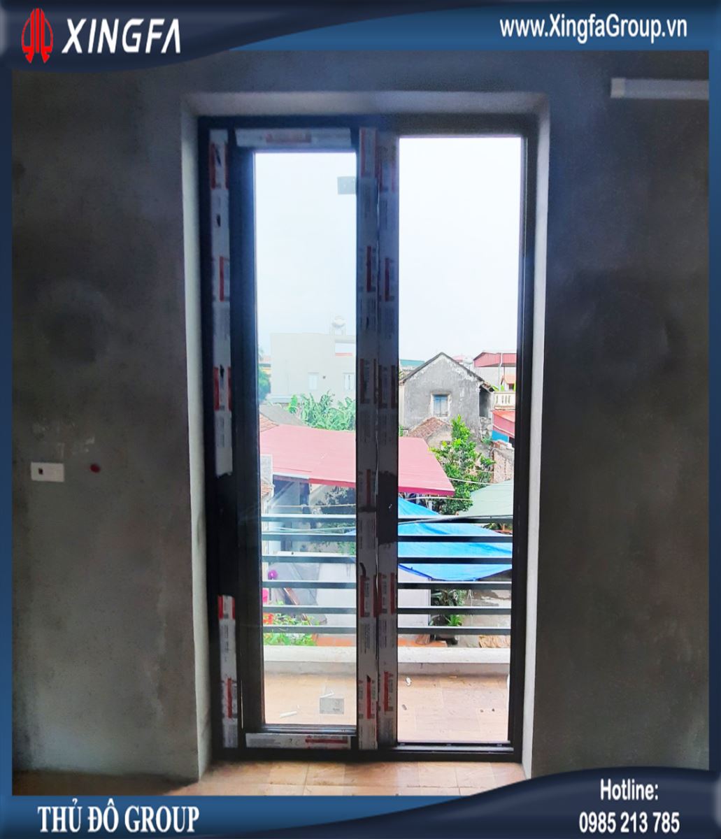 Bên cạnh mẫu cửa mở quay, một mẫu cửa khác được yêu thích không kém đó là cửa mở trượt nhôm Xingfa. So với cửa mở quay thì cửa mở trượt nhỏ gọn hơn, chiếm ít diện tích hơn do cánh cửa chạy trên ray trượt. Đặc biệt, cửa đi mở trượt nhôm Xingfa cung cấp bởi Thủ Đô Group được thiết kế có rãnh thoát nước ở trên khung cửa, khi nước mưa xuống sẽ theo rãnh này chảy ra ngoài chứ không bị chảy ngược vào trong. Tại công trình này, cửa đi mở trượt 2 cánh nhôm Xingfa được lắp đặt ở ban công tầng 2.